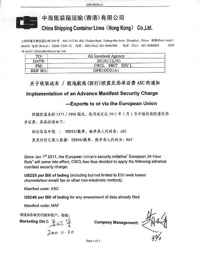 关于收取欧地航线ASC的通知
